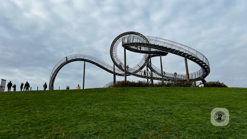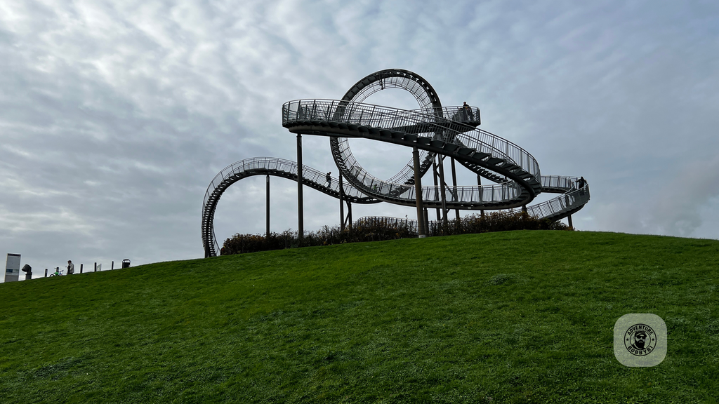 Manchmal sind es die spontanen Ausflüge, die am meisten Spaß machen – und genau so war es an diesem Tag. Ohne große Planung machten wir uns auf den Weg nach Duisburg, um uns endlich das „Tiger & Turtle“-Kunstwerk aus nächster Nähe anzuschauen. Schon von weitem sieht es aus wie eine Achterbahn – nur eben ohne Wagen, dafür mit Treppen, die man tatsächlich gehen kann.